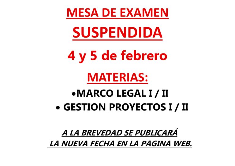 EXAMEN SUSPENDIDO – MARCO LEGAL – GESTIÓN DE PROYECTOS Publicación de la entrada:05/02/2026 También podría gustarte Horarios de Nivelación 23/07/2025 Felicitaciones estudiante Micaela Correa – Primer Premio «Concurso Constructiva EM 2024» 10/09/2024 Calendario de exámenes para CTT periodo febrero 2025 – CTT Instalaciones Eléctricas. 26/12/2024