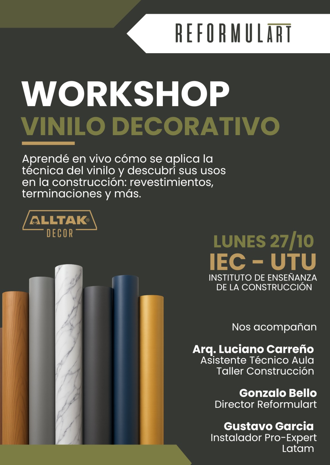 Se invita a toda la comunidad educativa y al público en general a participar del Workshop sobre Vinilos Decorativos en la Industria de la Construcción, una instancia de formación y demostración práctica orientada a conocer las aplicaciones y ventajas de este material en el ámbito constructivo.